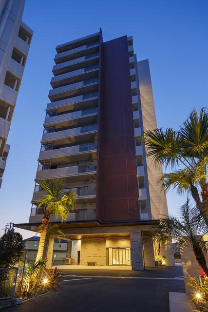 14階最上階・角住戸。イオン時津まで徒歩5分の好立地で、買い物や生活の利便性に優れた環境。