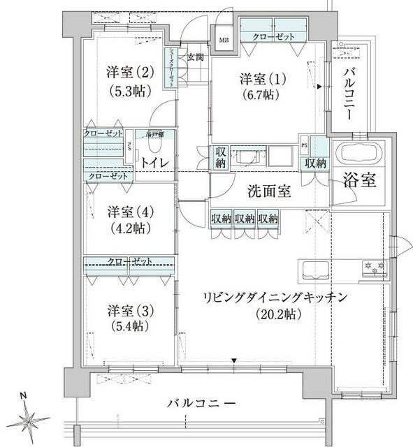 - 4LDK(洋 6.7・5.4・5.3・4.2 LDK 20.2)