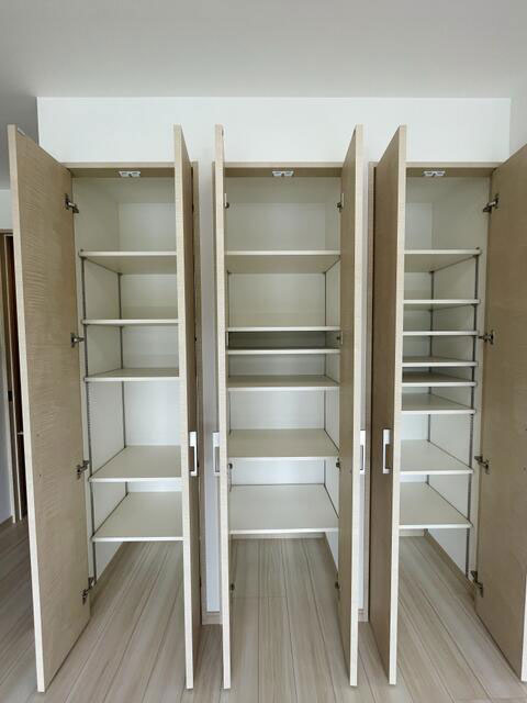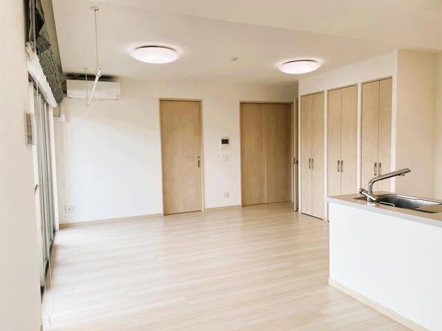 - 全居室収納、エアコン2台以上、収納スペース、室内洗濯機置場、クローゼット、モニター付インターホン、ディンプルキー、ダブルロックドア、室内物干し、都市ガス、二面バルコニー、駐輪場、人感センサー付照明、フットライト、ダウンライト、照明器具、複層ガラス